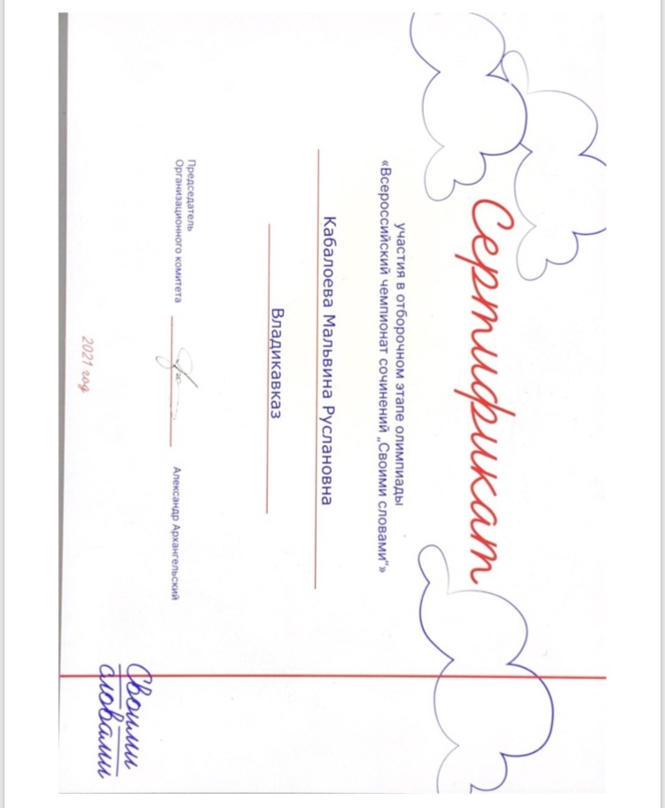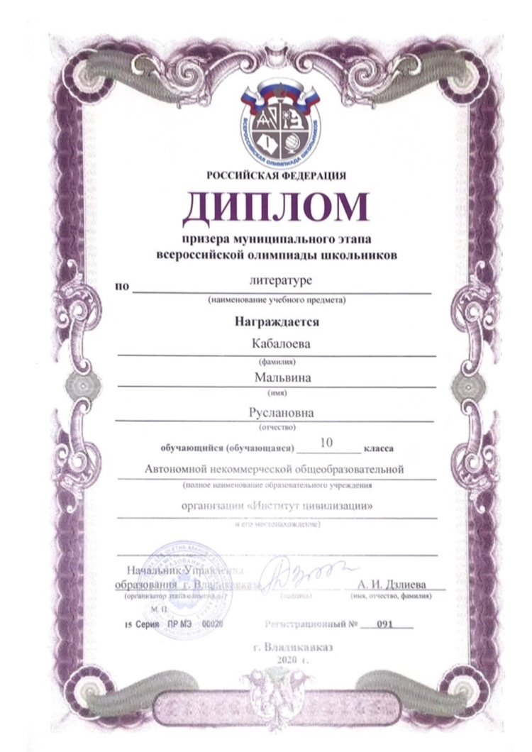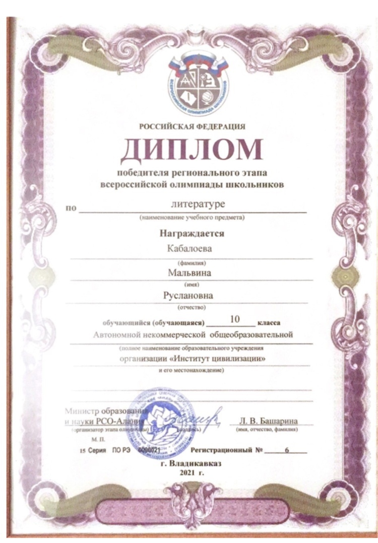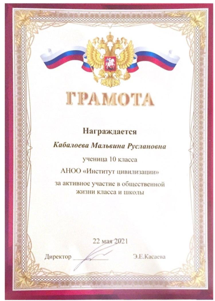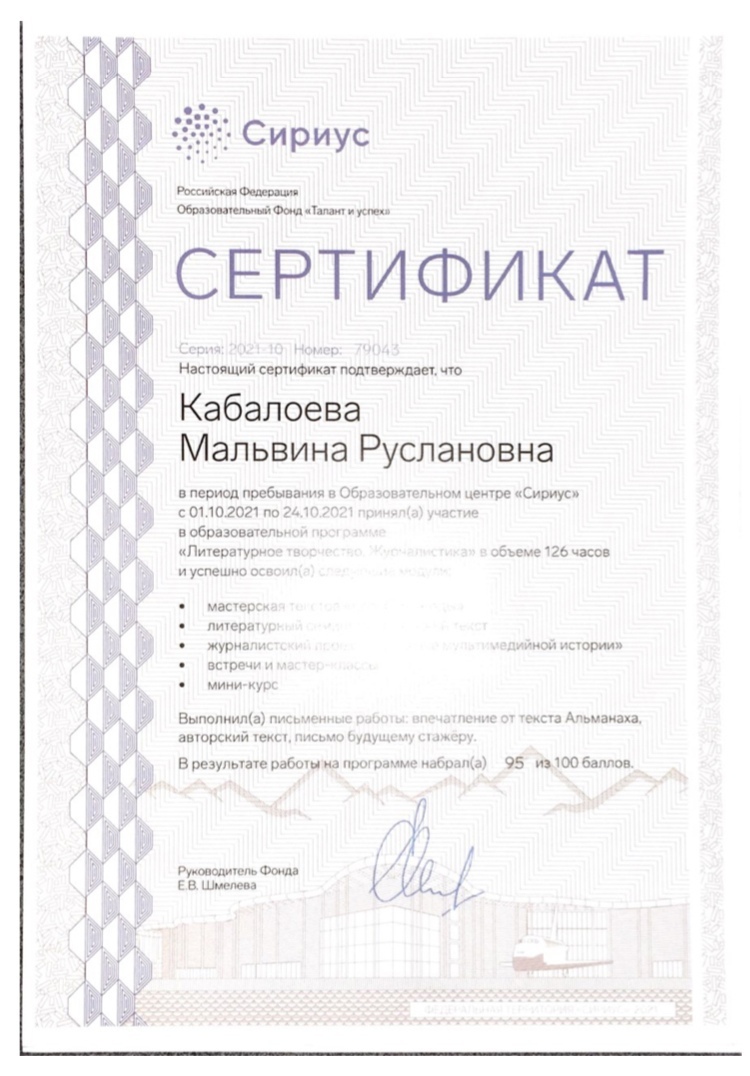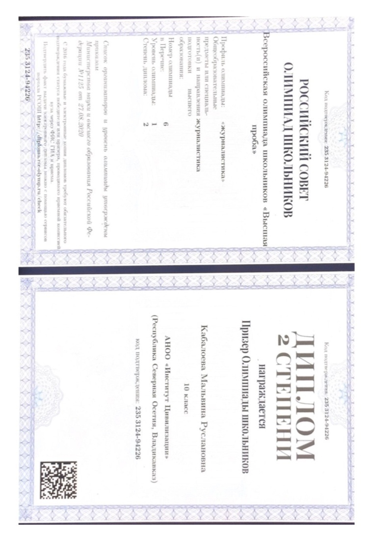 Победитель Всероссийских конкурсов по журналистике «В фокусе – детство», «Молодой медиаменеджер», «Юные журналисты за умное и полезное информационное пространство»